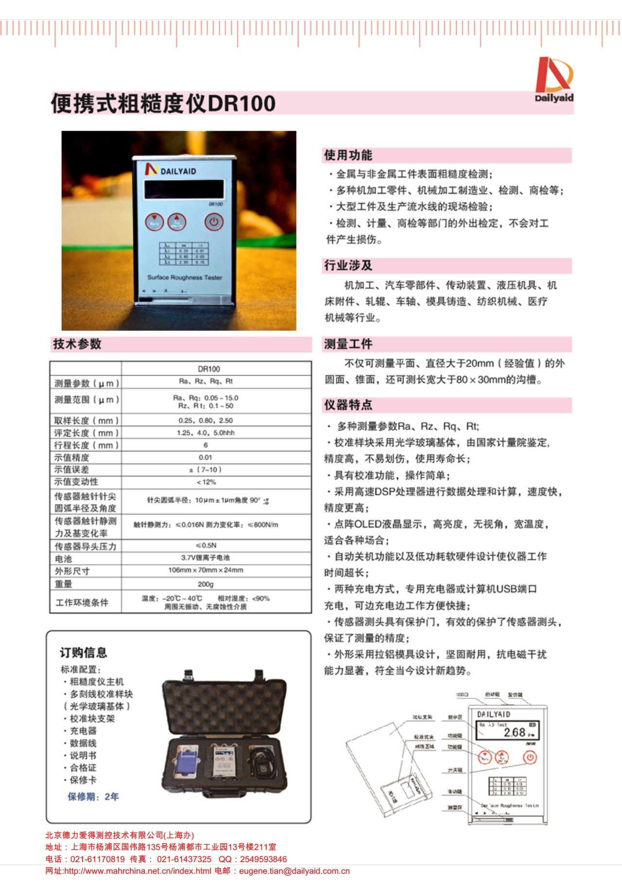 1、便攜式粗糙度儀DL SURF DR100